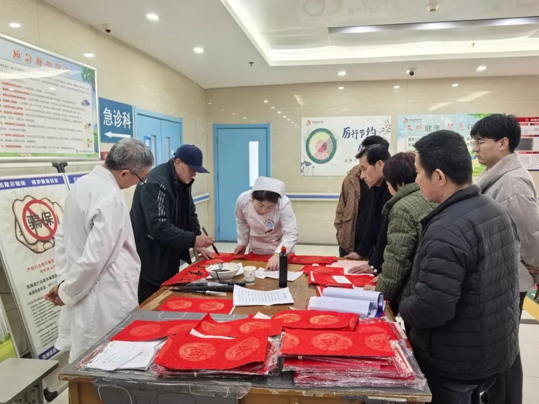 活动期间,门诊大厅内红纸铺展、墨香四溢,处处洋溢着欢乐喜庆的节日气息。曾金福老师凝神提笔、行云流水,将新春祝福与医者仁心融入笔墨之间,一副副对仗工整、寓意吉祥的春联和一个个苍劲有力的福字跃然纸上。现场职工有序等候、踊跃领取,欢声笑语不断,大家手捧墨迹未干的春联,脸上洋溢着幸福的笑容,纷纷为这场充满温度的文化活动点赞。