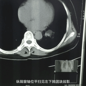 63岁女性患者,因右踝关节骨折住入我院骨伤科,无反复呼吸道感染及咯血病史,无咳嗽、胸痛、消瘦、乏力。入院后常规拍胸片意外发现左下肺心影后团块状高密度影,进一步行胸部CT示左肺下叶基底段团块状软组织密度影,形态不规则,有浅分叶,不除外肿瘤,建议CT引导下肺穿刺活检。内四科姚纲副主任医师会诊后建议行胸部CT增强扫描,用我院64排128层西门子螺旋CT增强扫描示病灶中度强化,三维重建示左下肺病灶由后肋间动脉供血,诊断为肺隔离症(叶内型)。